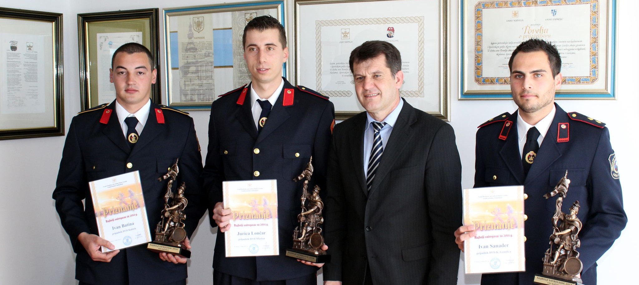 Jurica Lončar iz DVD Mladost, Ivan Sanader iz DVD Kaštel Gomilica te Ivan Batina iz DVD Kaštela, proglašeni su najboljim vatrogascima prema ukupnim aktivnostima u svojim društvima u 2014. godini.